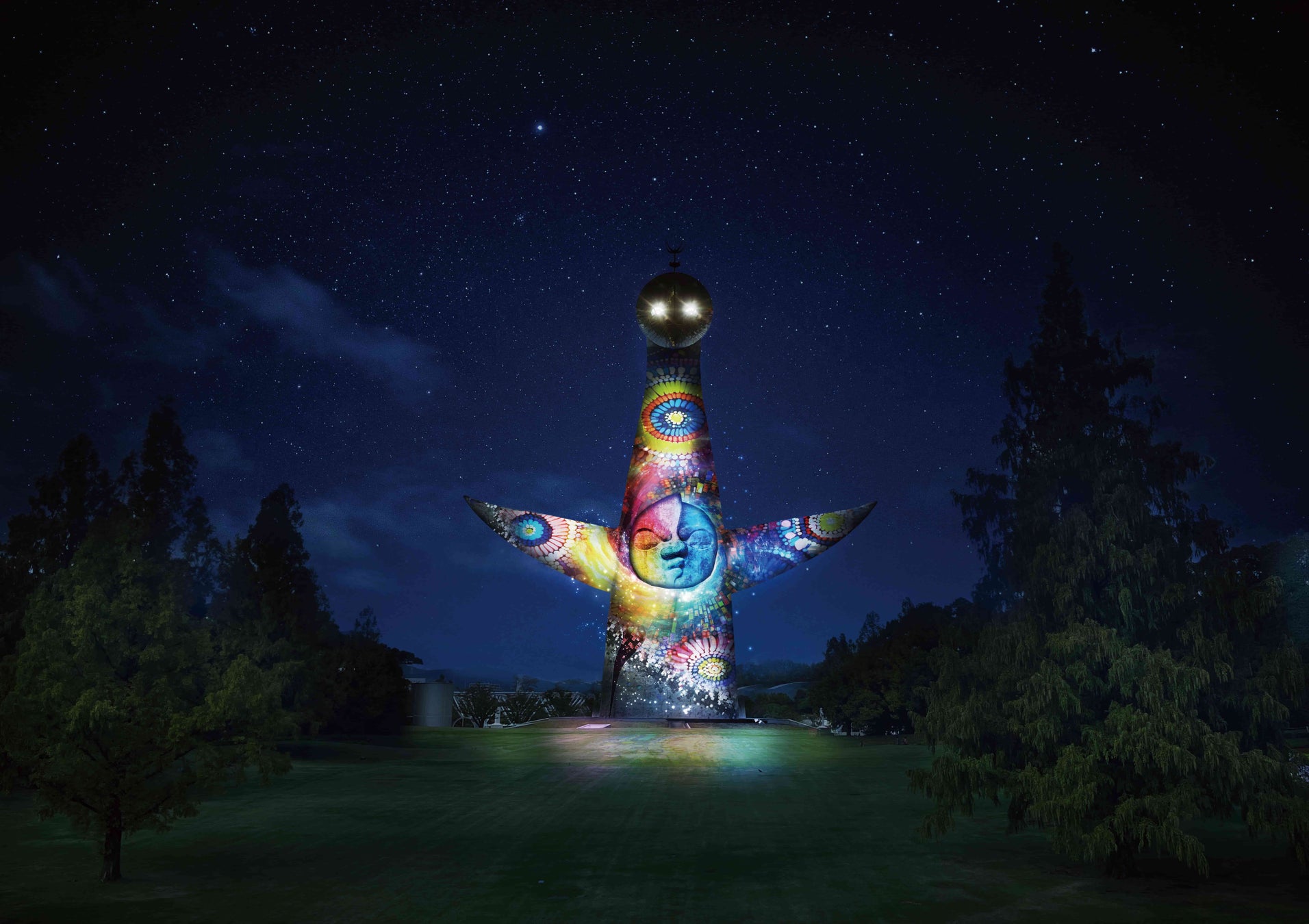 1970年大阪万博の跡地を整備した万博記念公園は、芸術家・岡本太郎氏の作品「太陽の塔」がシンボルです。この度、高さ約70mの「太陽の塔」正面でプロジェクションマッピングショーの開催が決定しました。