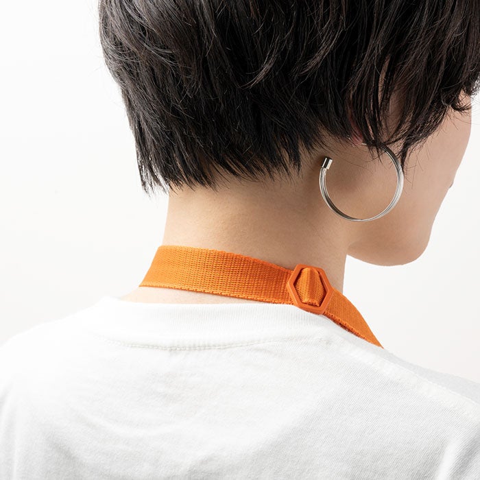 「ショルダーストラップ」は、肩に食い込みにくい平紐で、約84~146cmまで幅広い調整が可能。長さ次第で首掛けや肩掛けが可能な2WAY仕様です。