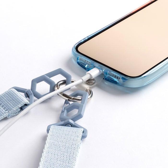 ストラップホールがあるスマホケースで使える、接続用ストラップも付属。