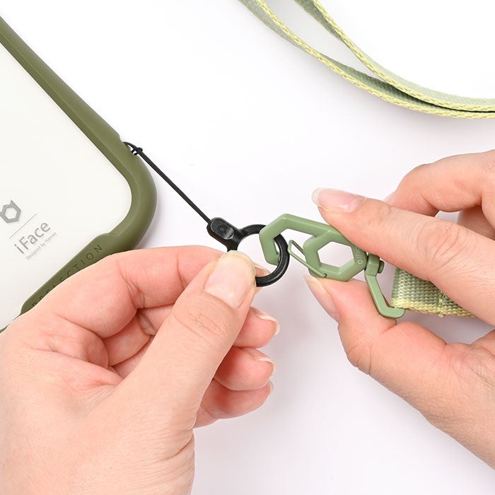 ストラップの両端はiFaceオリジナルデザインのカラビナになっておりデザイン性と機能性を両立しました。