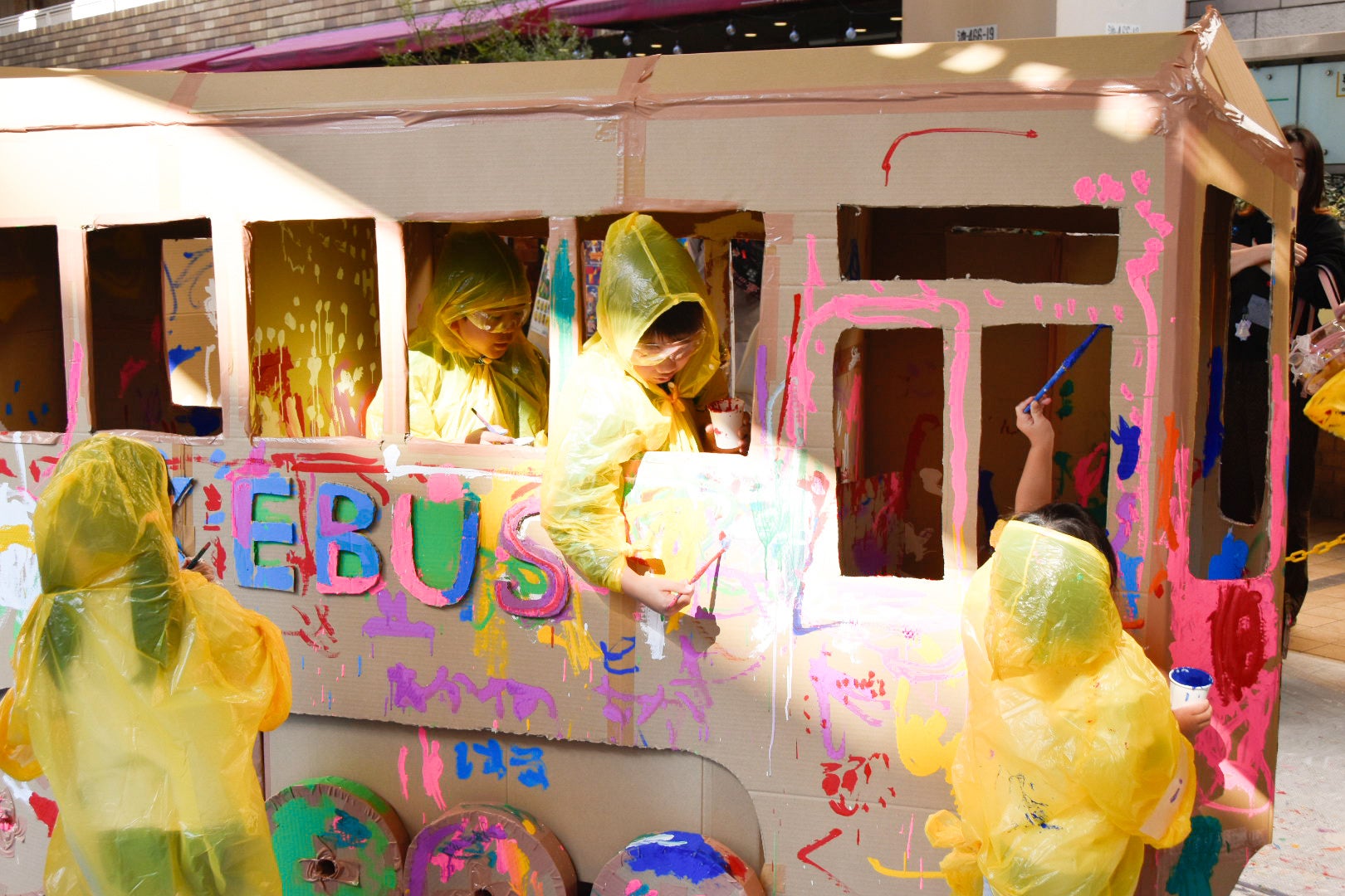 元々は歩行者通路にのみ使用されていたエリアでしたが、2024年に池袋エリアプラットフォーム*¹による社会実験「IKEBUKURO PUBLIC FURNITURE TRIAL」*²の一環で、ファニチャーを設置し、利用者が多かったため常設することとなりました。ファニチャーは、約200人の子どもたちと、アーティストによるペイントイベントにより彩られ、「通り過ぎるだけの場所」から「誰もが居心地よく過ごせる場所」となりました。