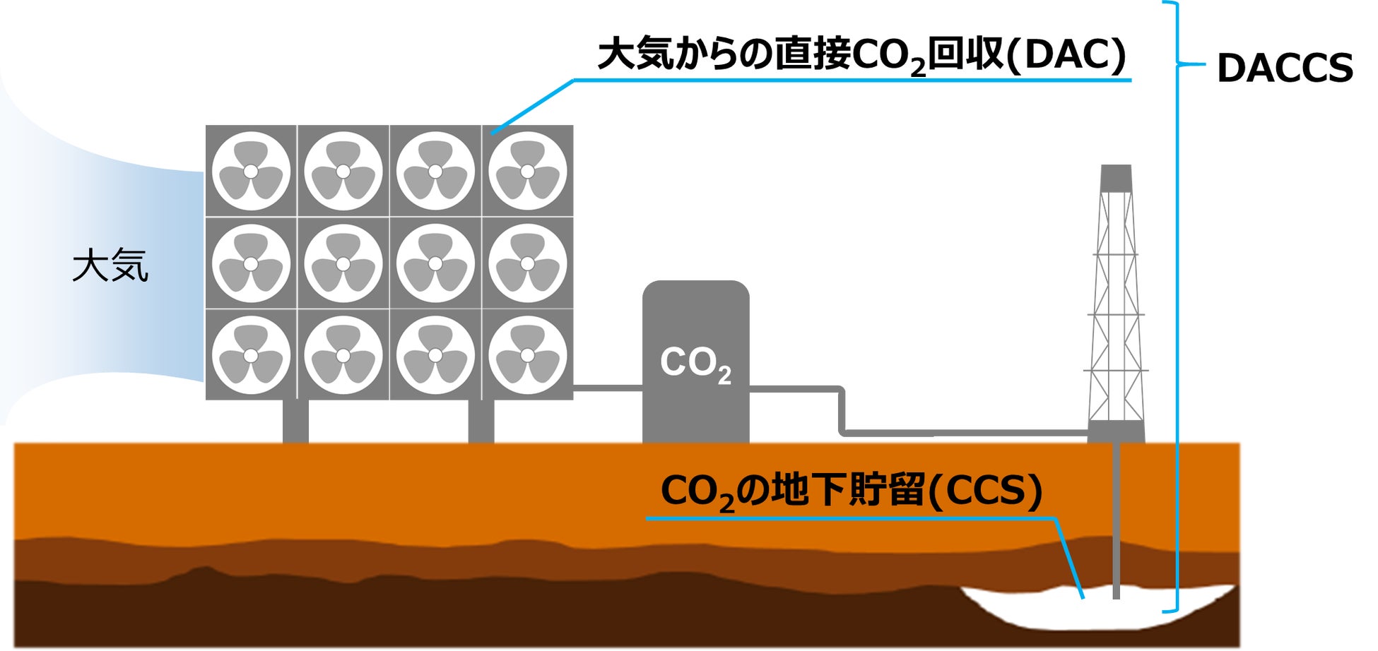 IEA(国際エネルギー機関)やIPCC(気候変動に関する政府間パネル)などの試算では、カーボンニュートラルを実現するためには、DACCSなどのネガティブエミッション(*2)技術の活用により、2050 年に年間で最大100 億トンのCO2除去が必要とされています。