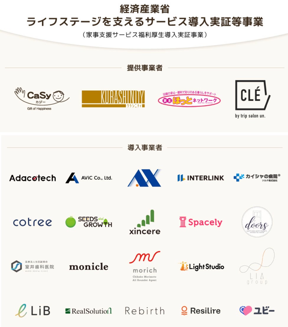 家事代行サービスを中心とした暮らしのマッチング・プラットフォームを手掛ける株式会社CaSyと株式会社パソナが運営するプレミアムハウスキーピングサービス「クラシニティ」、京王電鉄株式会社が運営する暮らしのお手伝いサービス「京王ほっとネットワーク 」、訪問美容サービスなどのライフサポートサービスを展開する株式会社 un.は、福利厚生として家事代行を導入する35社と共に「家事支援サービス福利厚生導入実証事業」に採択されました。