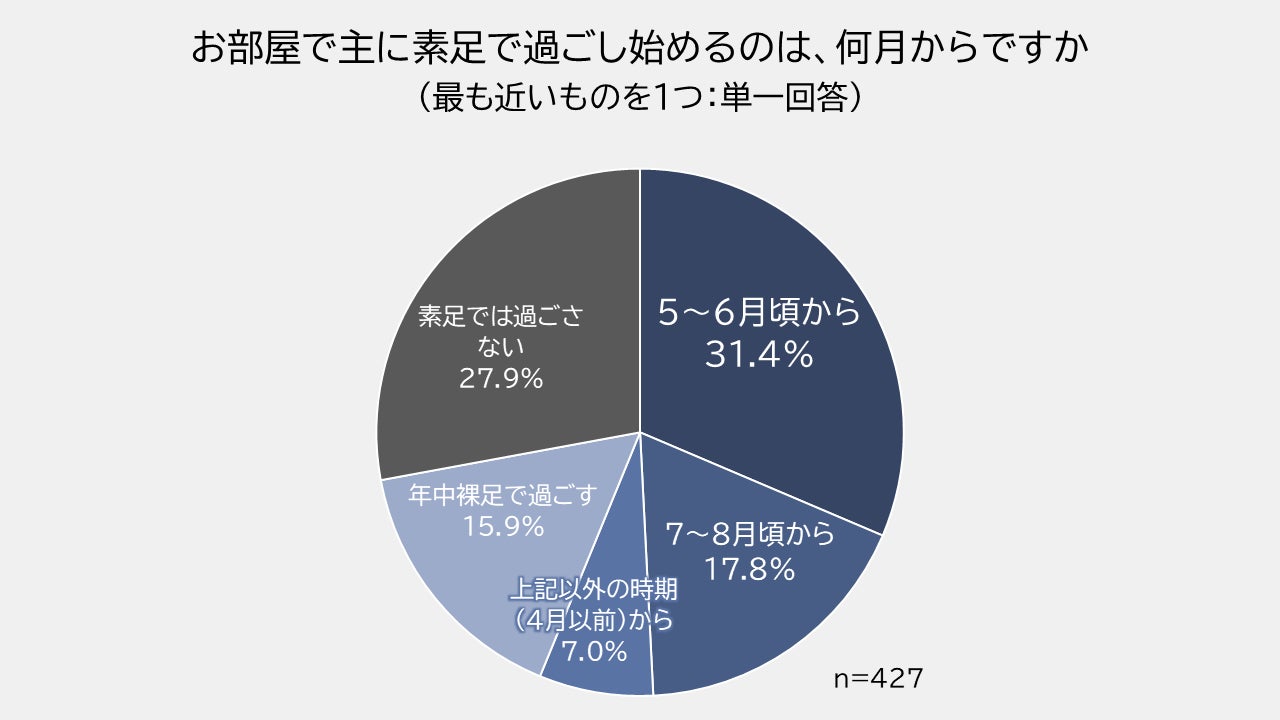 パナソニック株式会社は、20代~60代の男女427名を対象に、素足で過ごす季節はいつから始まるかを調査しました。