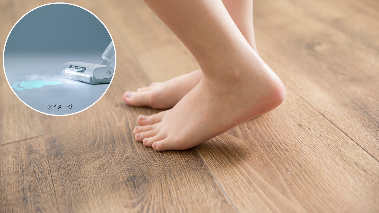 パナソニック コードレススティック掃除機のマイクロミスト機能を使えば、普段の掃除機がけでフローリングの皮脂汚れまでスッキリ