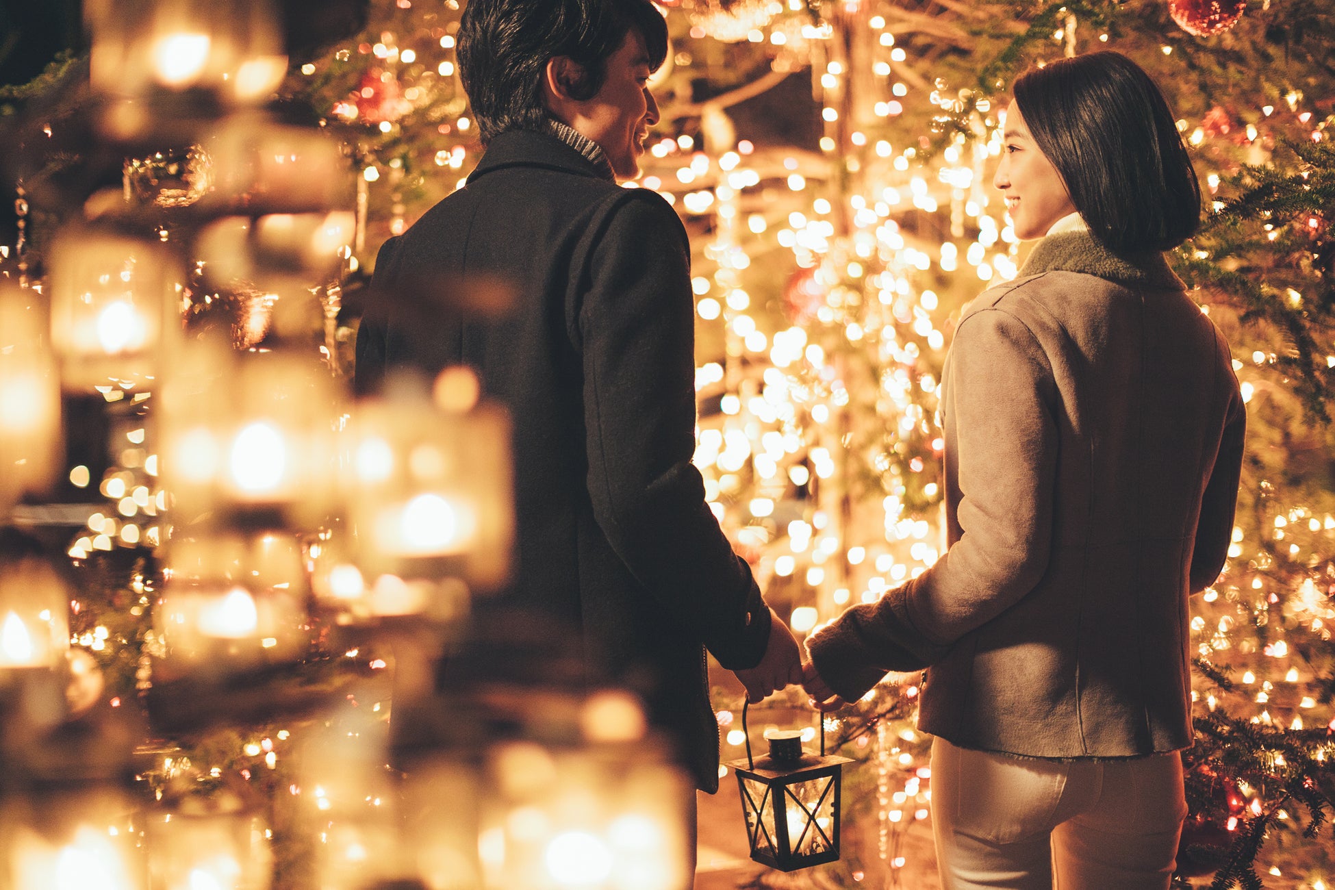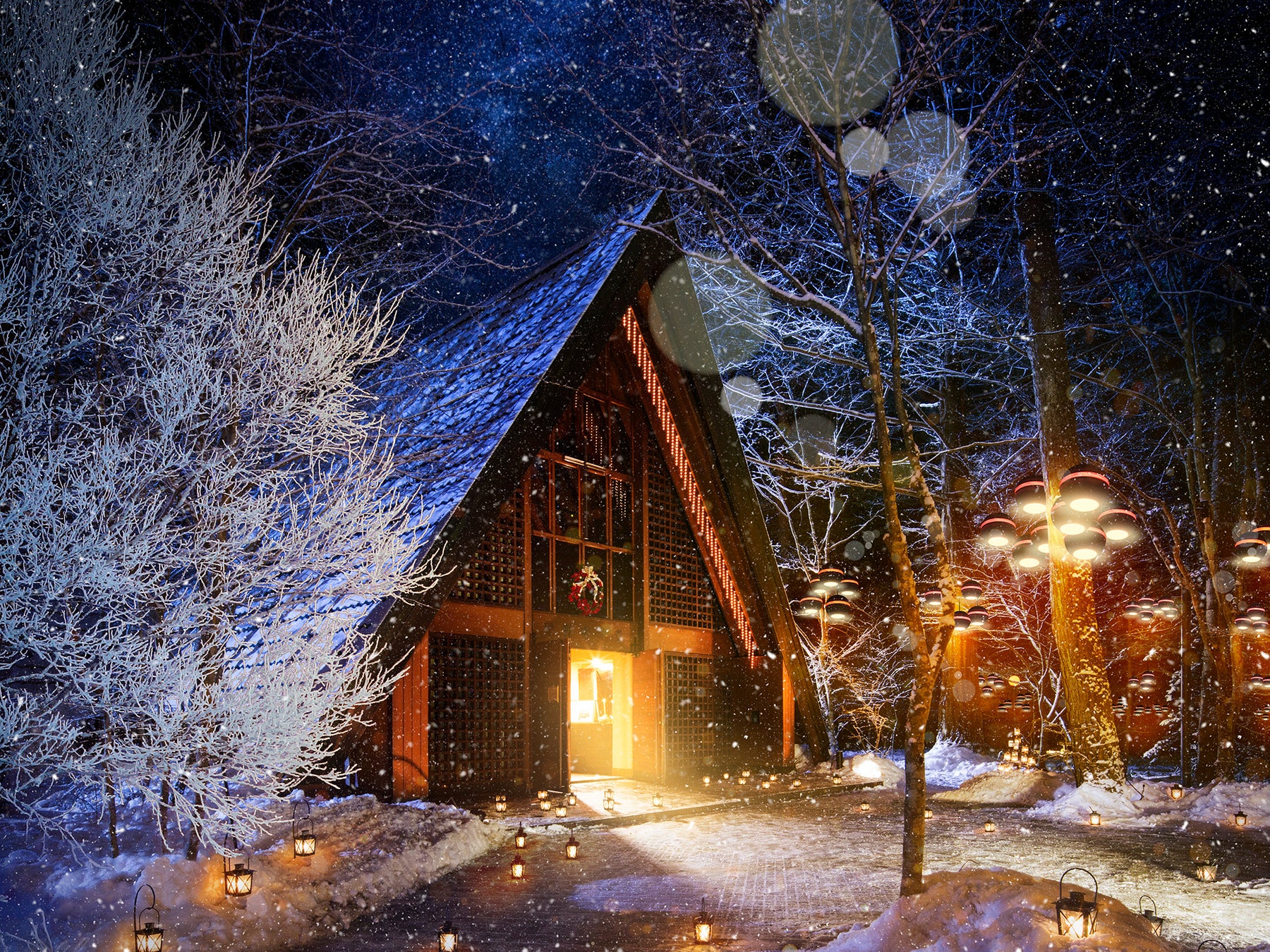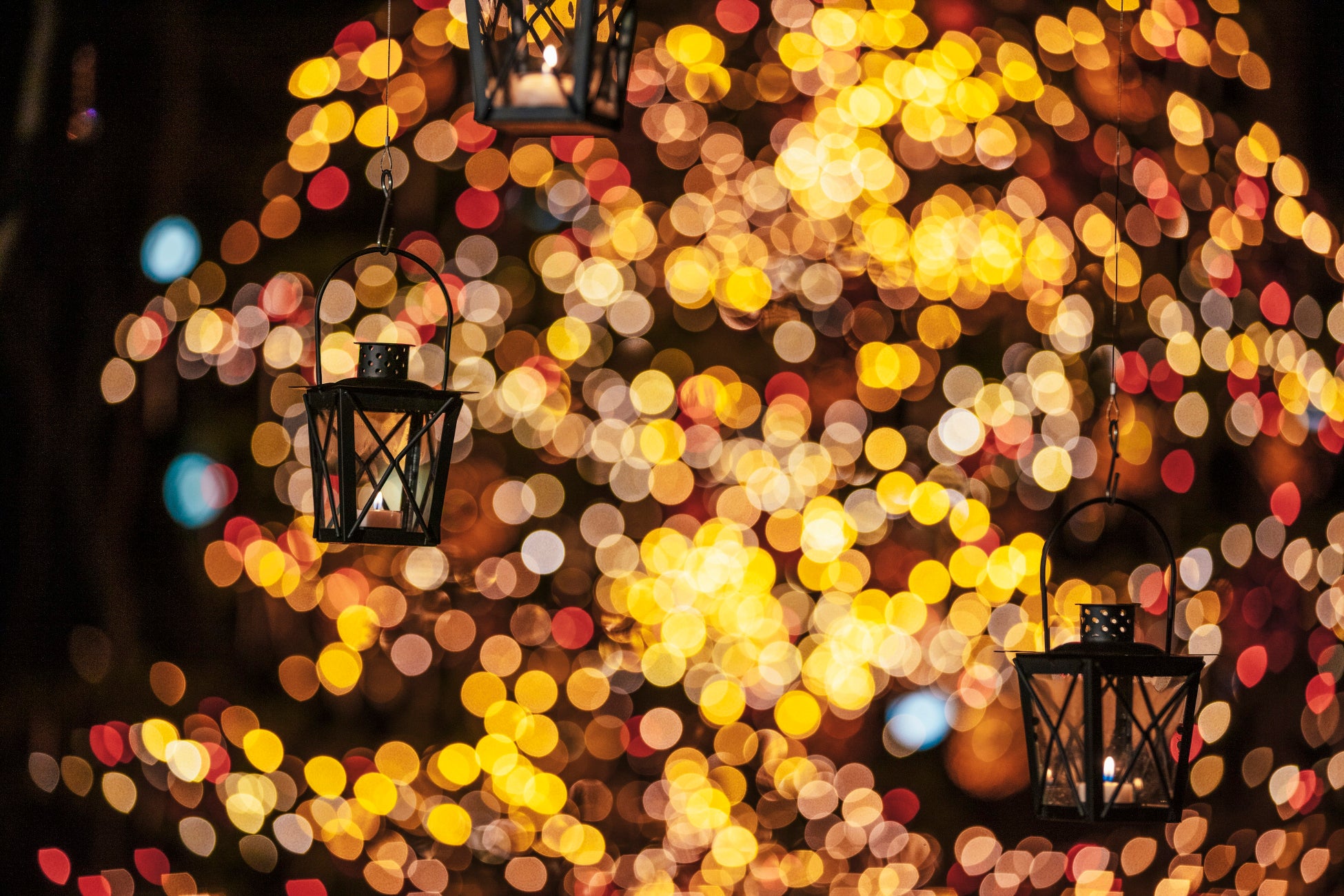 12月25日から数えて4週間前の日曜日から12月24日まではアドベントといい、イエス・キリストの生誕を待ち望む大切な期間です。このアドベントと12月25日に、軽井沢高原教会の森はあふれるほどの光に包まれます。冬の夜空に星が瞬き、教会の森一面にランタンキャンドルの灯りが広がります。それはまるで星空から地上に星が舞い降りたかのような景色です。教会前には天頂に星を掲げた6mのクリスマスツリーが全身に光を纏い佇んでいます。
