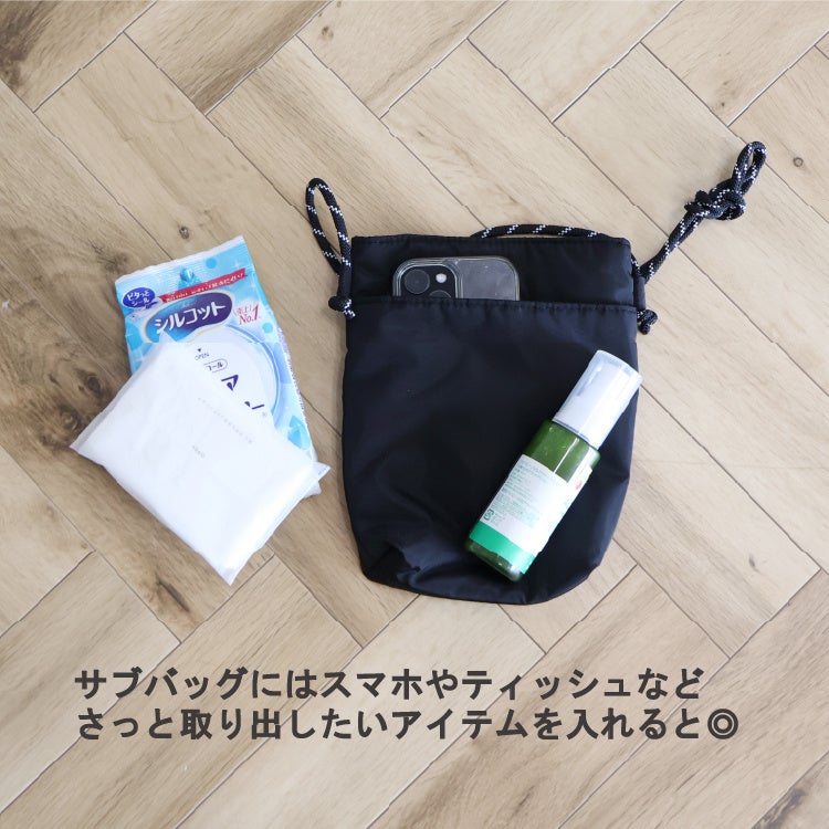 今回はブラックに加え、秋らしいブラウンとEC限定カラーのネイビーが新たにラインアップ。パパとママ兼用でお使いいただきやすく、オシャレ見えするカラーを採用しました。さらに、同色の肩掛けができる便利なサブバッグも付属しています。