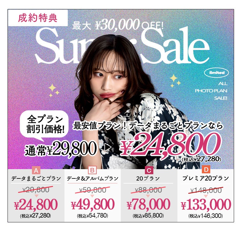 全てのプランが割引に!最安値プランは¥24,800+税から。通常より最大¥15,000お得です。