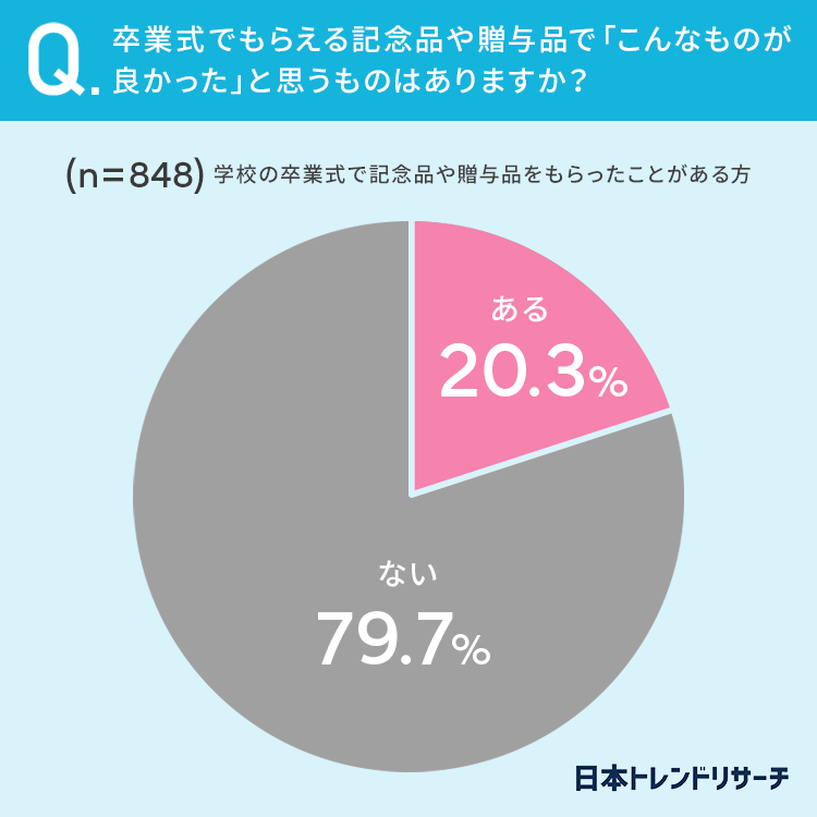 20.3%の方が、卒業式でもらえる記念品や贈与品で「こんなものが良かった」と思うものが「ある」と回答しています。
