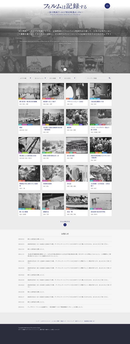 ・サイト名:「フィルムは記録する ―国立映画アーカイブ歴史映像ポータル―」