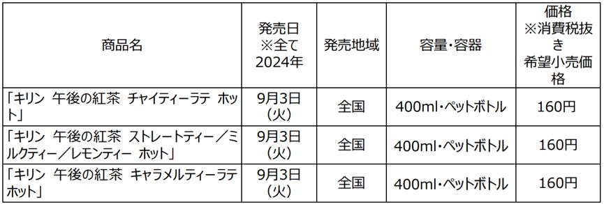 キリンビバレッジ株式会社(社長 井上一弘)は、紅茶飲料売上本数No.1ブランド※1「キリン 午後の紅茶」から「キリン 午後の紅茶 チャイティーラテ ホット」を2024年9月3日(火)より期間限定で全国にて新発売します。また、同日より「午後の紅茶」の定番商品である「キリン 午後の紅茶 ストレートティー/ミルクティー/レモンティー ホット」と「キリン 午後の紅茶 キャラメルティーラテ ホット」も期間限定で全国にて発売します。