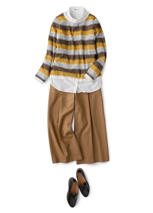 主役ニットは正統派な着こなしに
