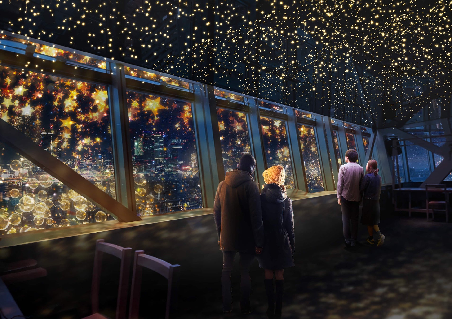 毎年、展望台のマッピングショーでコラボレーションしてきた中部電力 MIRAI TOWERとネイキッド。今冬は、昨年好評だった「NAKED STAR ILLUMINATION」の演出をさらにアップデートし、名古屋の夜景が満点の星空をイメージしたシャンパンゴールドの光に包まれる、大人な光のアート体験をお届けします。