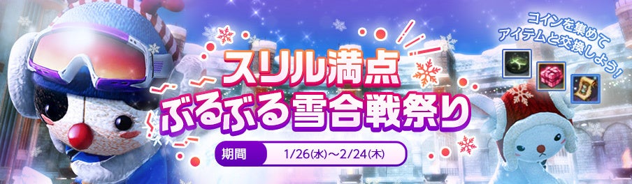 イベント期間中に開催する3vs3のチーム戦で雪玉を投げ合って戦う“雪合戦”に参加すると、「雪合戦祭り記念コイン」を獲得する