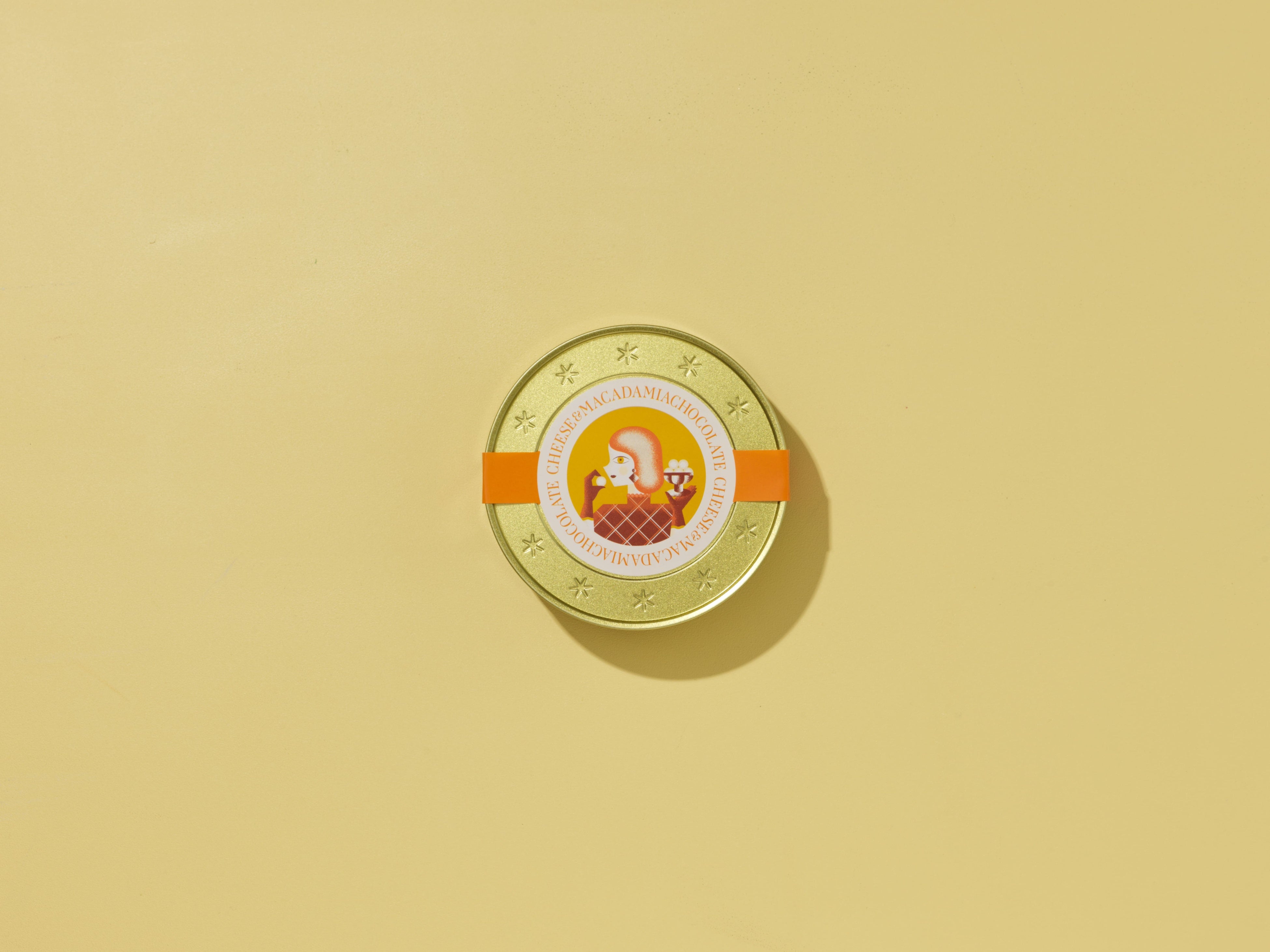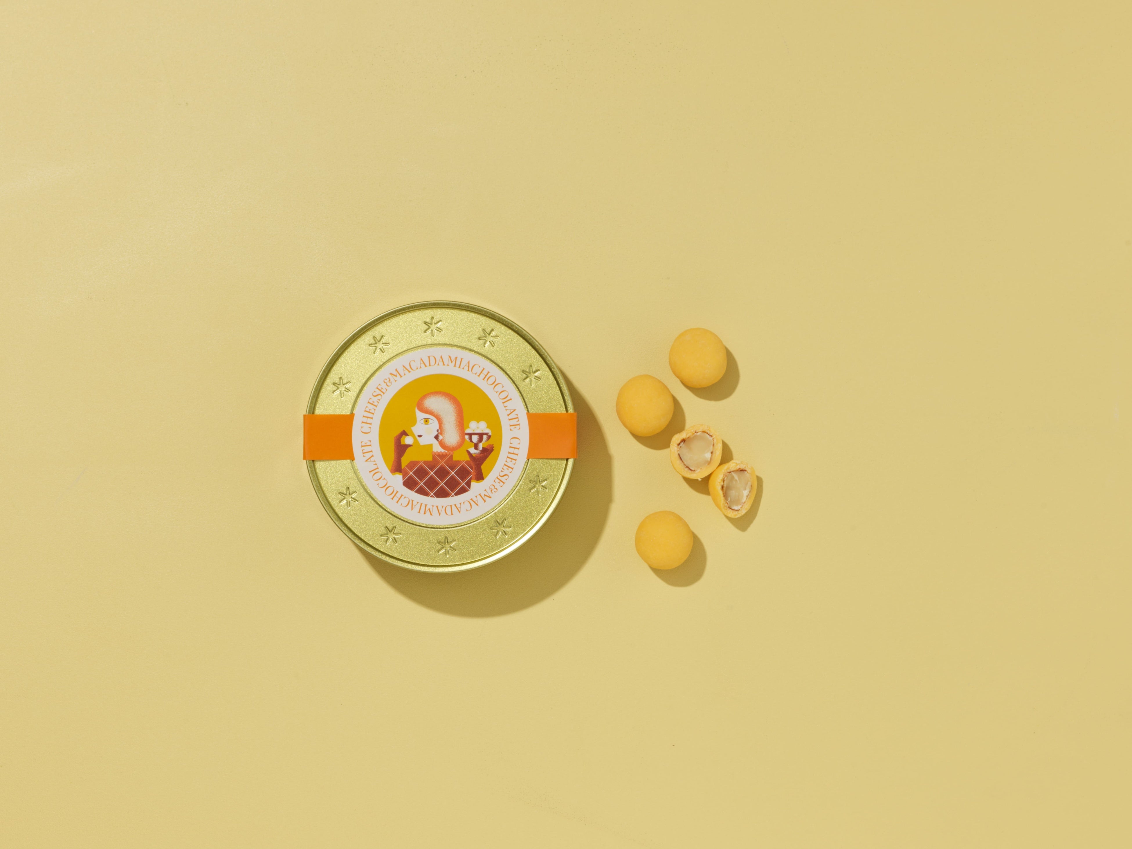また、高級感のあるパッケージも魅力の一つです。缶の色合いには、チーズをイメージしたゴールドを採用。天面のシールには、商品が描かれており、女の子がチョコレートを楽しんでいる情景をイメージした、可愛らしくも洗練されたデザインです。商品自体のカラーから着想を得たワントーンの色使いと、チーズの味わいの濃さを表現したデザインにもご注目ください。