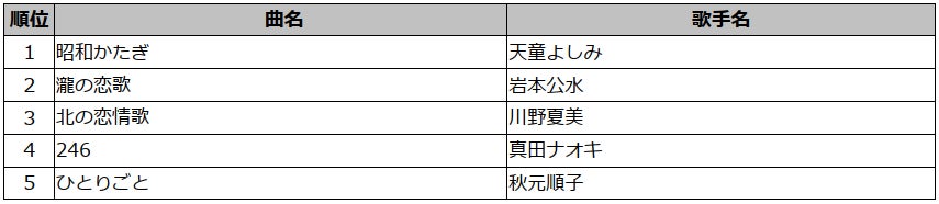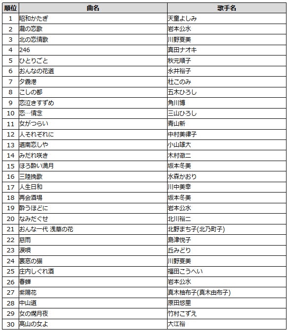■演歌・歌謡曲部門(カラオケで最も歌われた演歌・歌謡曲が対象)