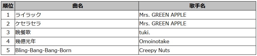 株式会社エクシング(以下、エクシング)と株式会社第一興商(以下、第一興商)は、「MUSIC AWARDS JAPAN」の「共創カテゴリー」におけるカラオケ特別賞「カラオケ・オブ・ザ・イヤー powered by DAM & JOYSOUND」の2025年3月13日から4月12日までの途中経過を発表します。