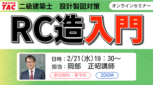 【TAC建築士】オンラインセミナー開催 二級建築士(製図)RC造入門