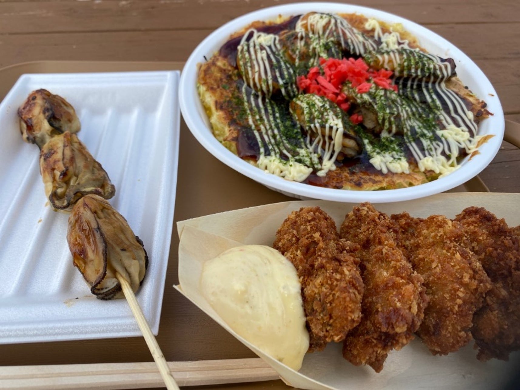 3年以上の歳月を費やし完成させたカキオコは生地のバランスや配合、キャベツの切り方までこだわって作っています。こちらのチケットでは「カキオコ(牡蠣入りお好み焼き)」「牡蠣串焼き(しょう油味)」「牡蠣フライ」の特別セットメニューをお楽しみいただけます。