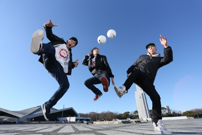 日産スタジアムトリコロールステージ及び特別ブース横にて、世界一の3人組フリースタイルフットボールチーム「ALEG-Re(アレッグ)」によるダイナミックなパフォーマンスを実施します。
