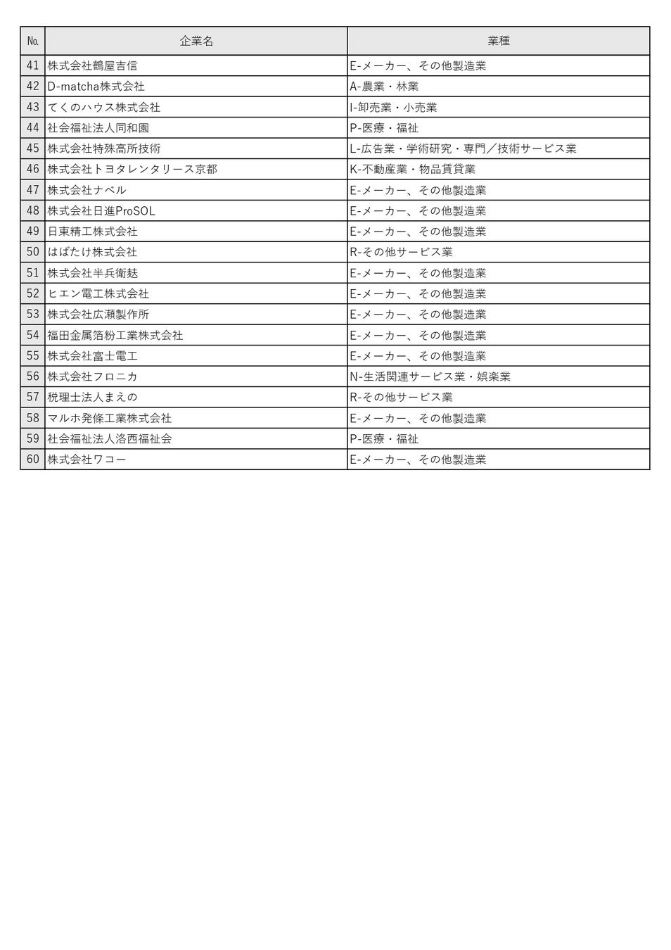 働きやすい職場づくりに取り組む京都企業 60社(うち理系企業10社)