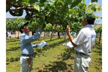 山梨県立笛吹高等学校は、文部科学省から「研究開発学校制度」の研究開発学校として指定されています。また、高校独自で「ASIAGAP」を取得しており、生徒自ら台湾でのぶどう販売実習を行う中、自身が栽培した果物が実際に消費者の手に渡る瞬間を経験することで、校内での栽培実習にとどまらない、よりリアルで高度な「生産者としての農業経営経験」を積んでいます。