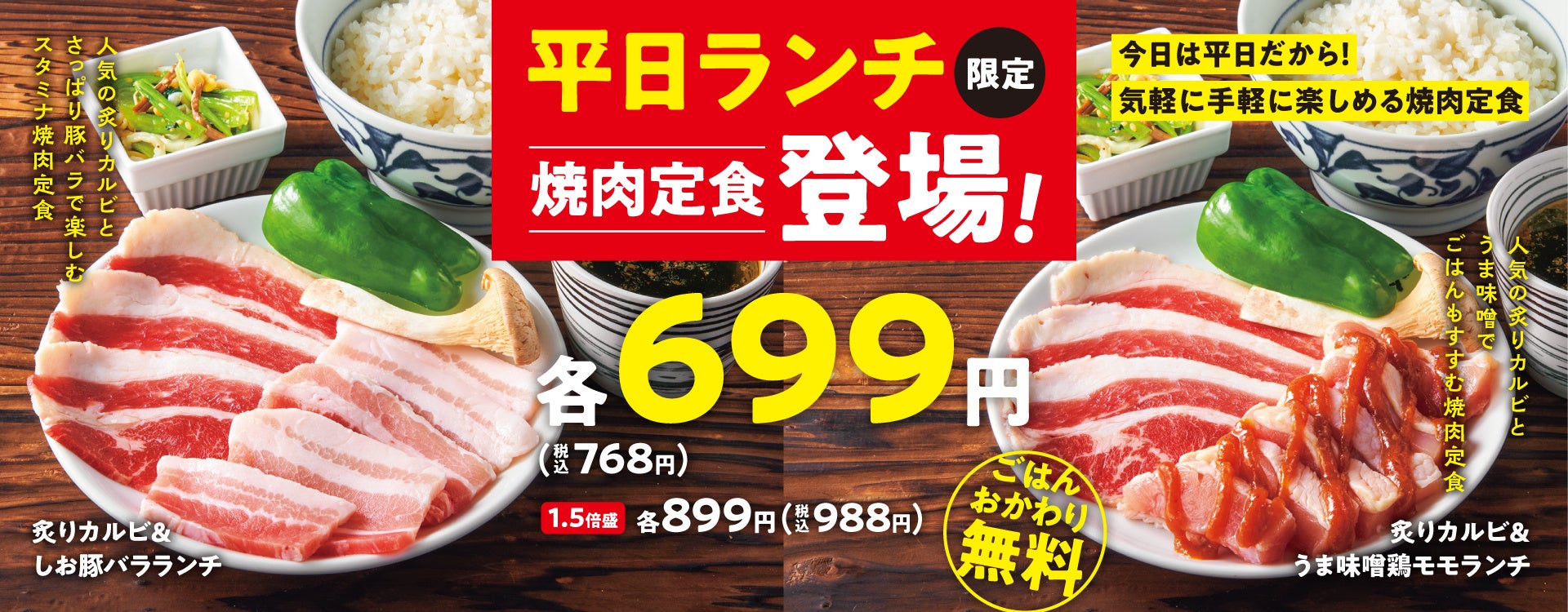 ・「炙りカルビ&しお豚バラランチ」・・・699円(税込768円)※ごはんおかわり無料