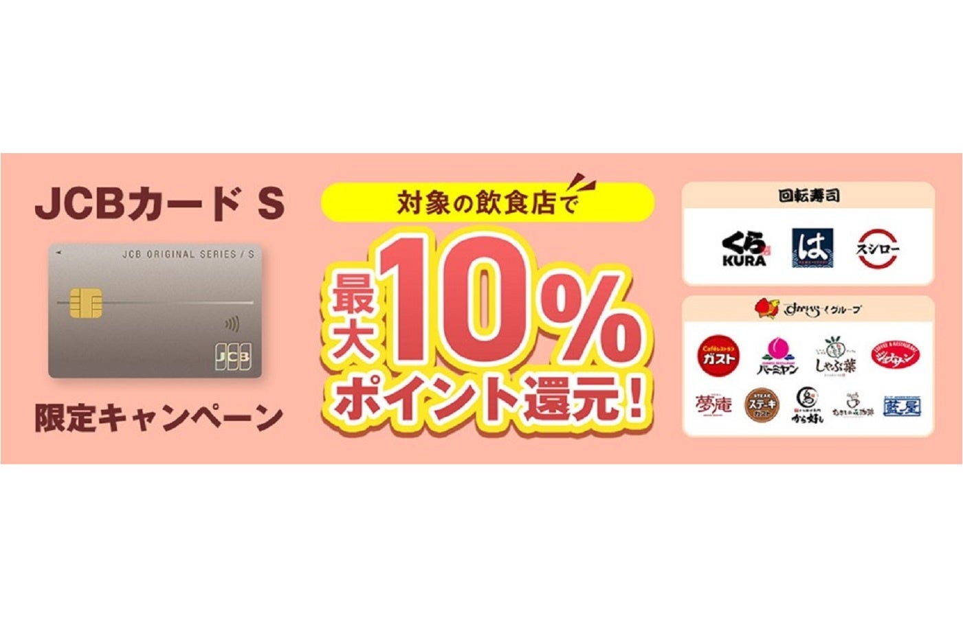 JCBカード S新規入会&対象の飲食店ご利用で最大10%ポイント還元キャンペーンを実施!
