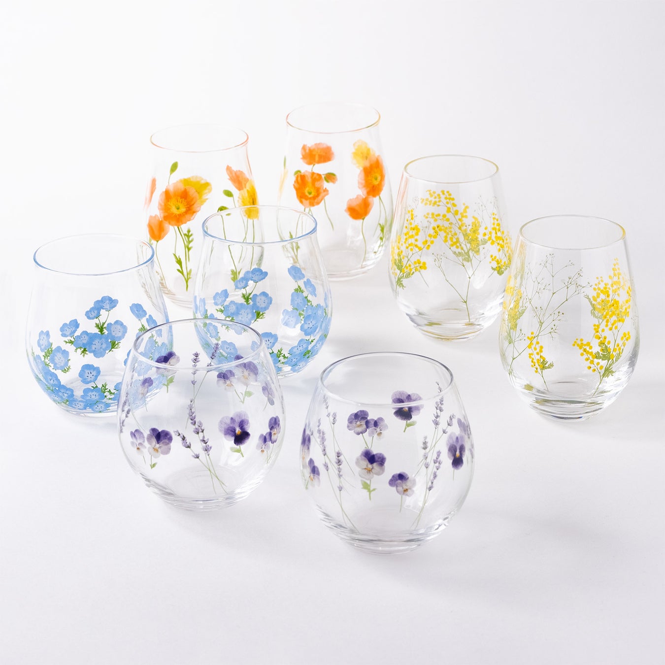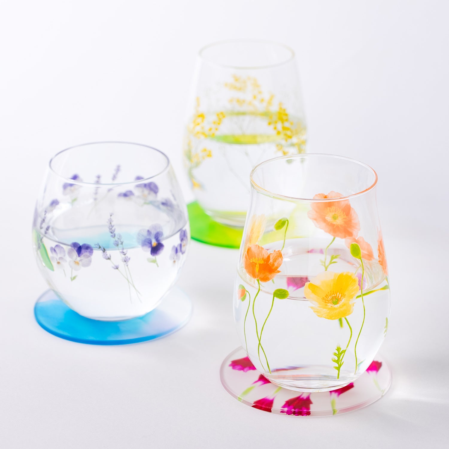 花々がかわいらしいタンブラーは、同デザイン2個セット。ペアグラス(3,300円)も有り。
