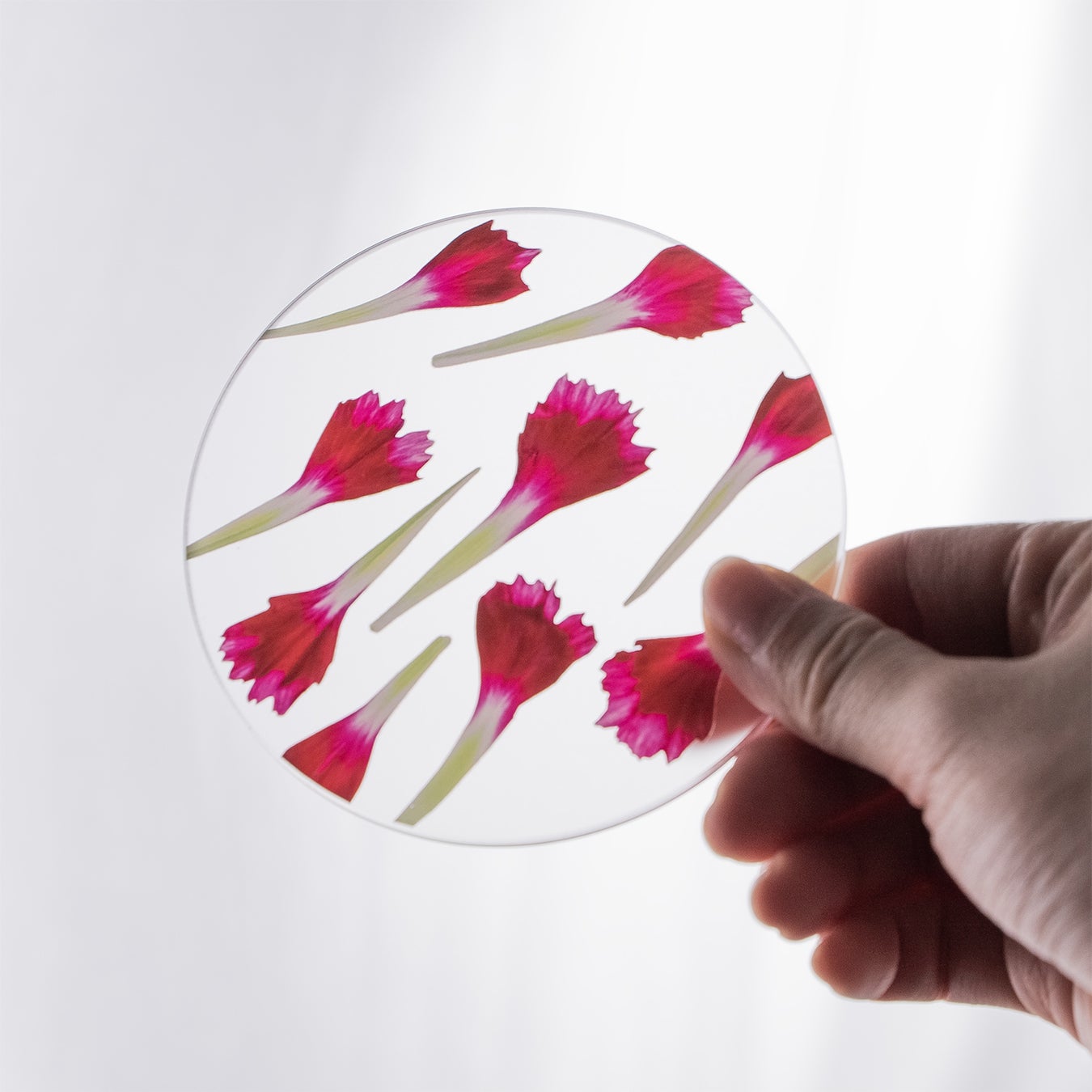 押花風のクリアデザインが涼やかなアクリル製のコースター。