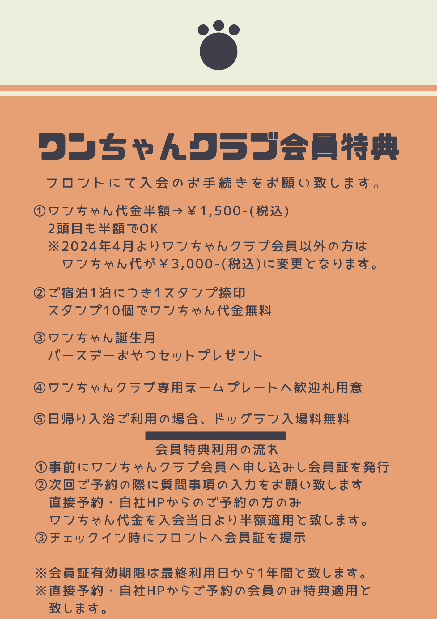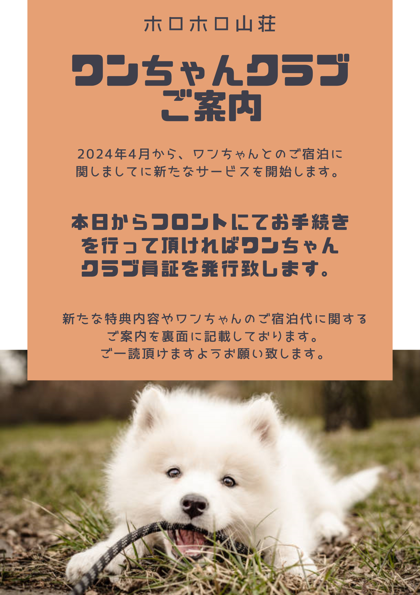 ワンちゃんと一緒にご宿泊の方に「ワンちゃんクラブ」という会員制度を開始致しました!