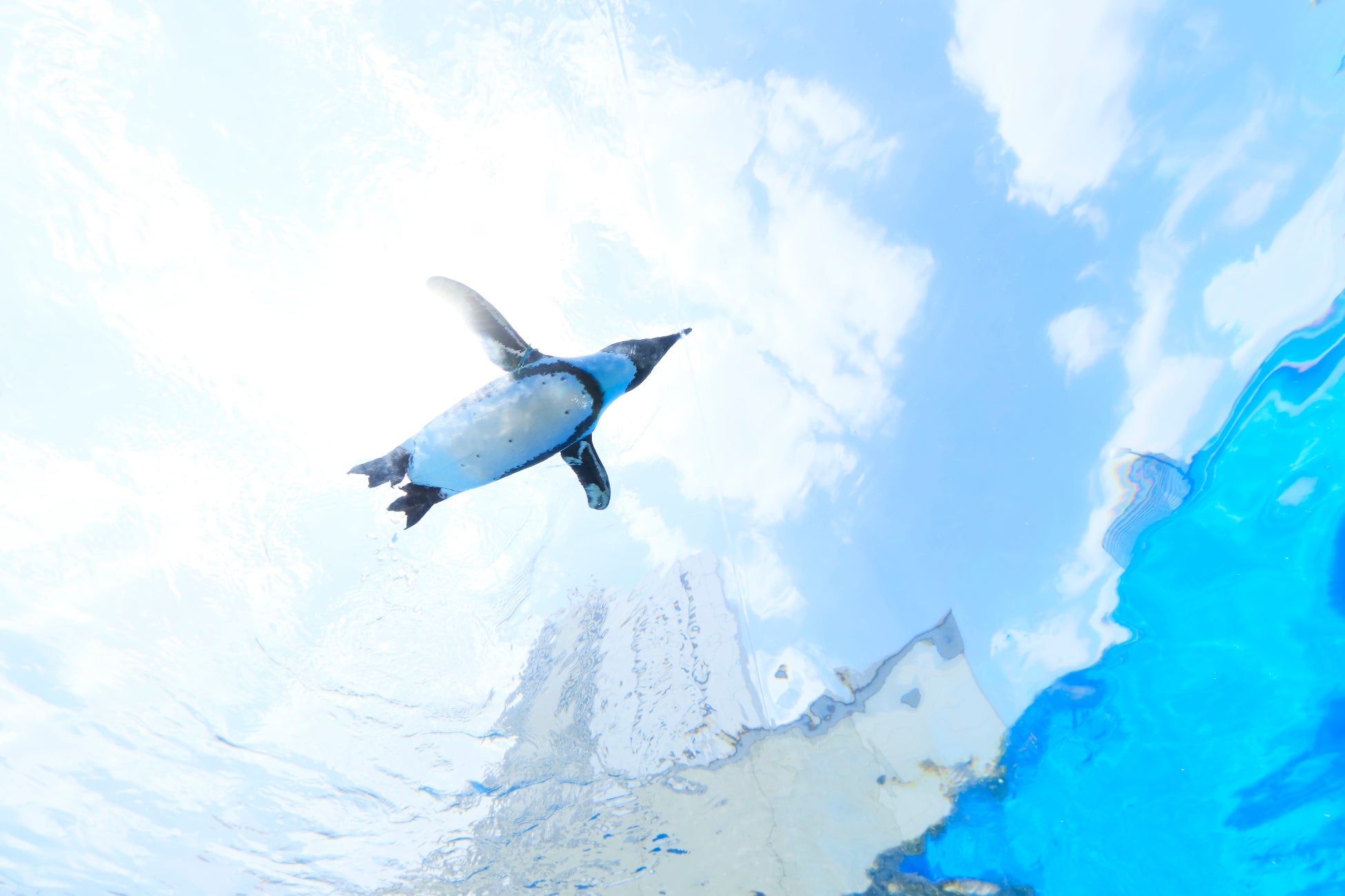 ケープペンギンは、アフリカ大陸に生息する唯一のペンギンです。体長約60cm、体重3~4kgほどで、ペンギンの仲間の中では中型種類に分類される大きさ。主食はイワシなどの小魚で、水中でエサを取り、岩場の隙間や藪の根元に作った巣の中で卵を温めます。
