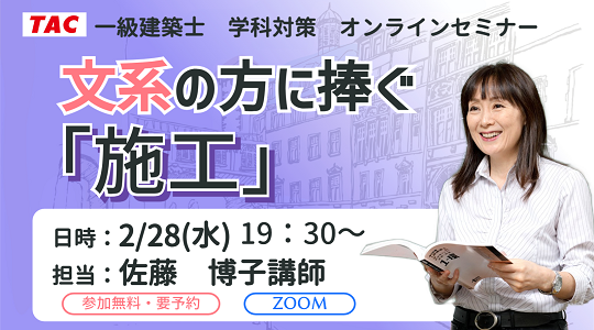 【TAC建築士】オンラインセミナー開催 一級建築士(学科)文系の方に捧ぐ「施工」
