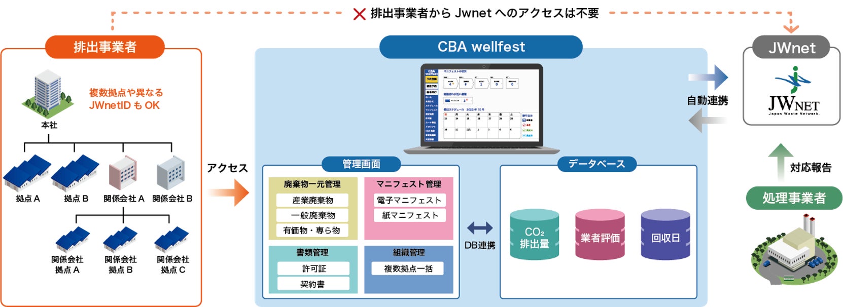 CBA社は、廃棄物DX(デジタル・トランスフォーメーション)プラットフォーム「CBA wellfest(ウェルフェスト)」を提供するスタートアップ企業です。「CBA wellfest」は、廃棄物処理業務のDXにより、業務最適化や法令遵守プロセスを支援し、的確なデータ管理と分析で資源循環(リサイクル)の社会形成を加速するクラウドサービスです。