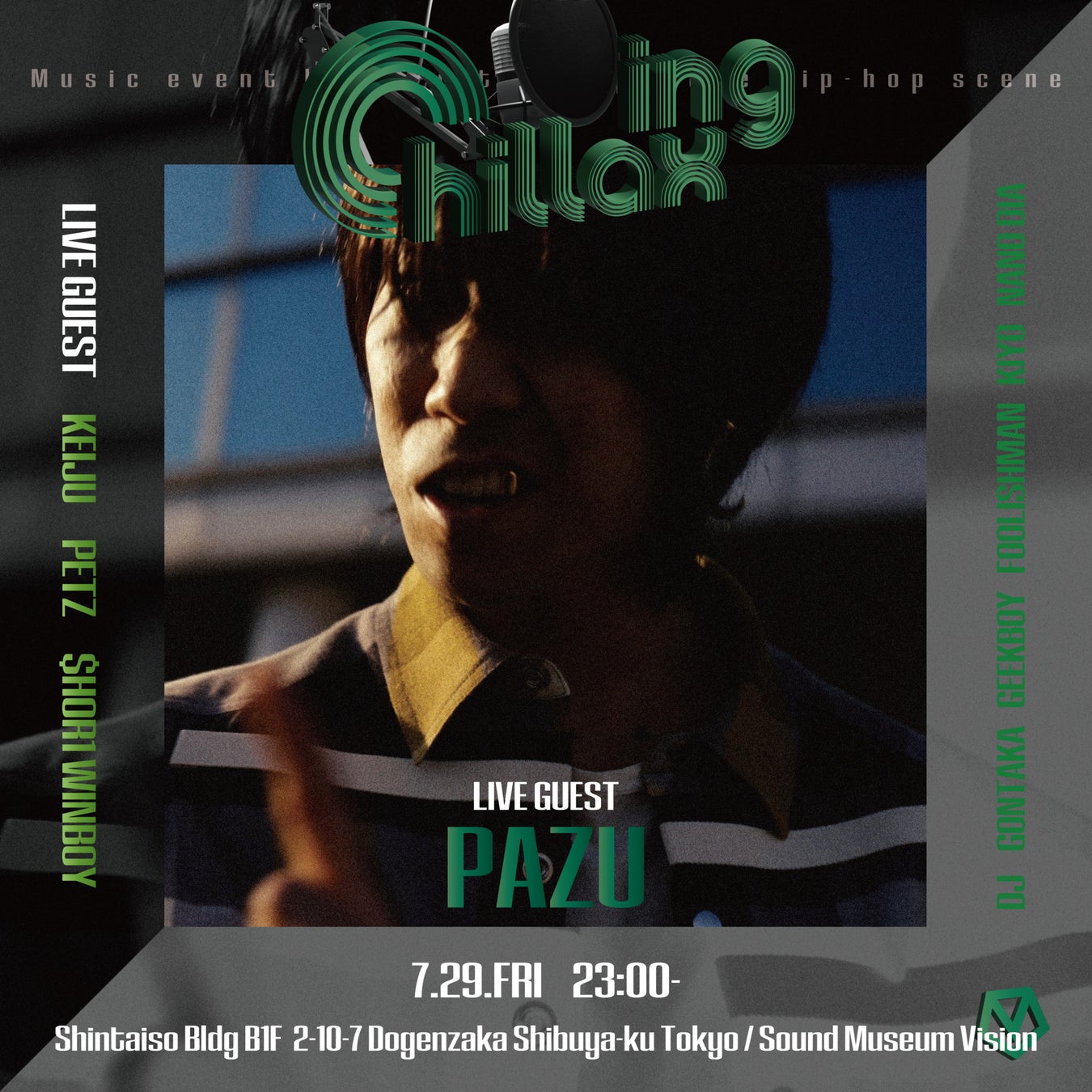 2016年からスタートした、今や日本のヒップホップシーンを牽引すると言っても過言ではないミュージックイベント「Chillaxing (チラクシング)」。東京、渋谷のクラブをはじめ、各地方の有力クラブからも多数声がかかる程の彼らのイベントは、現代の日本のヒップホップシーンに欠かせないトップアーティストが参加し、毎イベントでファッションブランドなどもサポートに付き、音楽と洋服の交錯を巧みに体現している唯一無二かつ、他には真似できないビックイベントにまで急成長している。