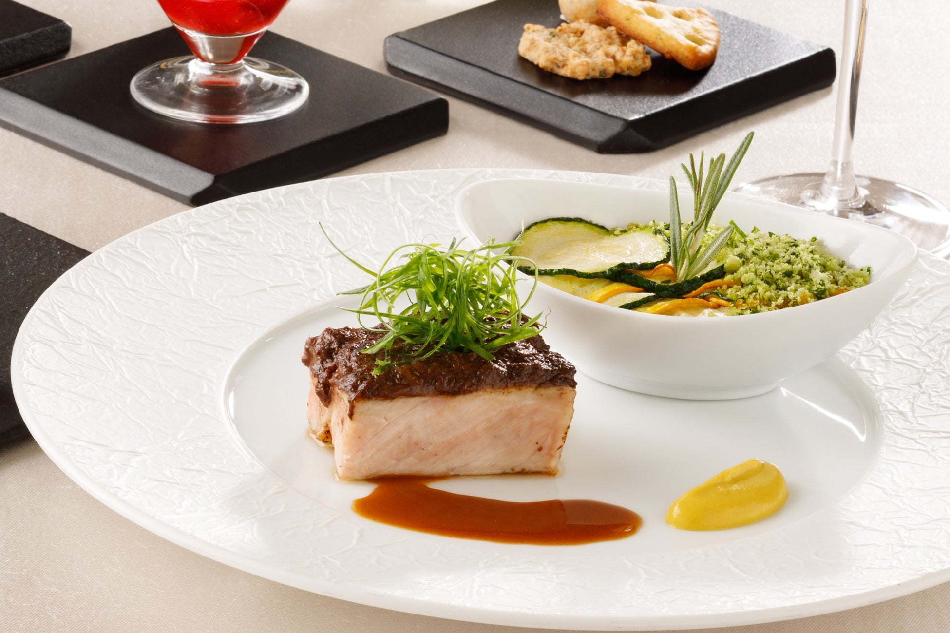 彩り豊かなオードブルや季節を感じるスイーツの数々のほか、メインディッシュはきめが細かく柔らかな肉質のもりおかあじわい林檎ポークをローストで堪能。落ち着いた雰囲気の店内で岩手・盛岡の味わいを楽しみながら、秋の夜長をゆったりとお過ごしいただけます。