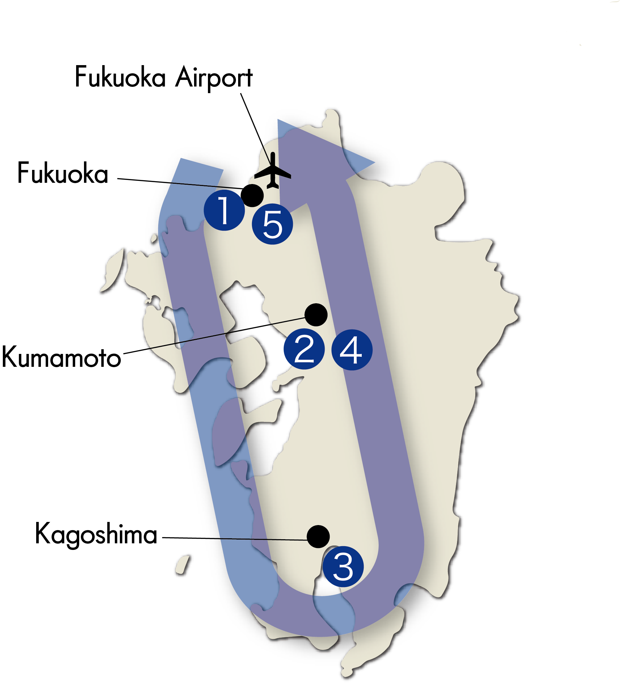 歴史や文化を深く知ることに価値を感じる本物志向の訪日外国人のお客様に、福岡市、熊本市、鹿児島市での「文化体験」「食体験」「アクティビティ」を存分にお楽しみいただけるルートです。