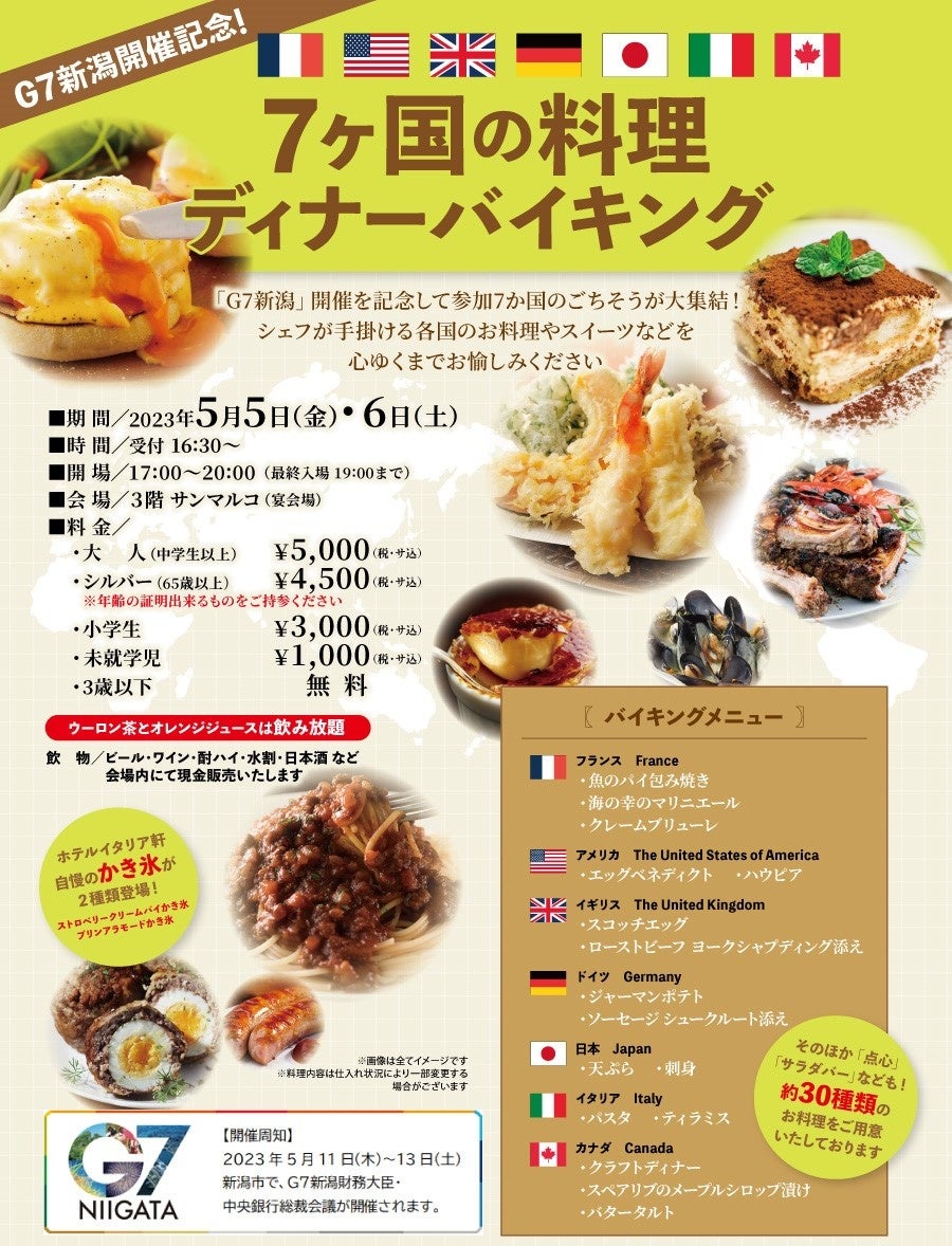 海外気分をGWに近場で味わおう!7ヶ国の料理をホテルイタリア軒で~2日間限定の「G7新潟」開催記念ディナーバイキング~
