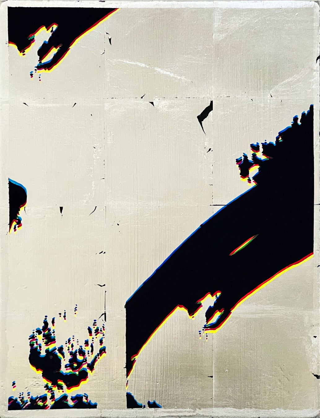 私はコピー機にインクを垂らし、できた図像を印刷する。偶然性と意思があらわれた印刷紙を⾁筆でキャンバス上に描いている。この⾏為は複製⾏為でありながらも、⼀回性をもった創造⾏為であり、「複製でありながら複製でない」というパラドックスを孕んでいる。ヴァルター・ベンヤミンは「いまここにしかない⼀回性:アウラ」を複製技術の芸術作品で「アウラ」が消失するとしたが、私の創造⾏為は複製により「アウラ」を⽣じさせているのではないだろうか。私はデジタルで複製したものを再度アナログで複製することにより、「コピーとオリジナルの価値の曖昧さ」を作品に仮託し可視化している。