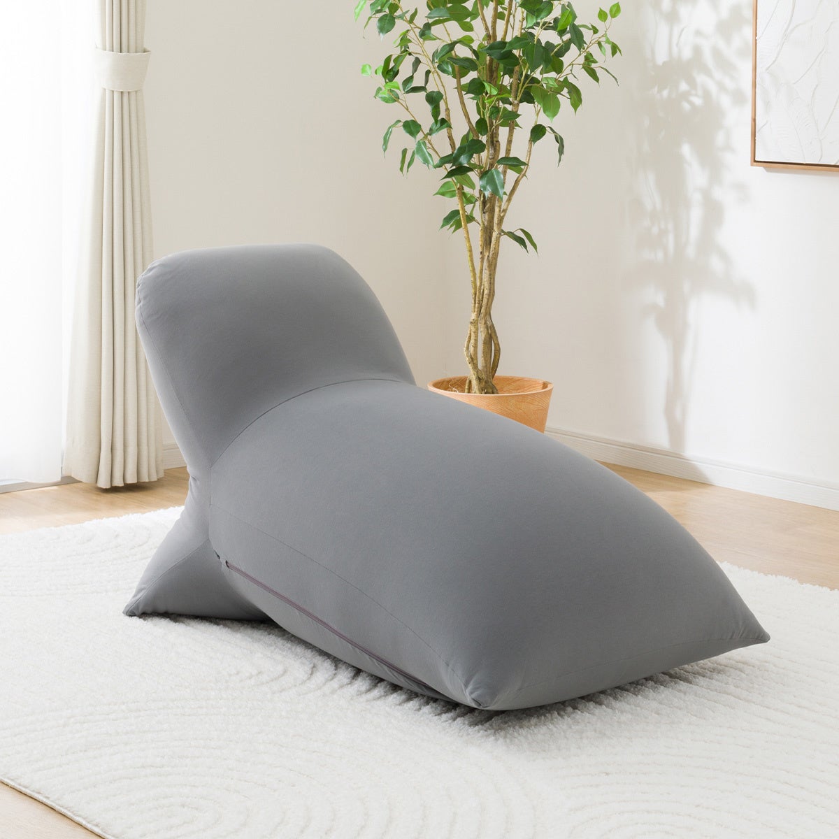 ご好評いただくなかで「もっと大きなサイズが欲しい!」という声にお応えし、長さ約106㎝のロングタイプを開発しました。ロングタイプは、座るだけでなく寝転んでも全身をやさしく包み込みます。