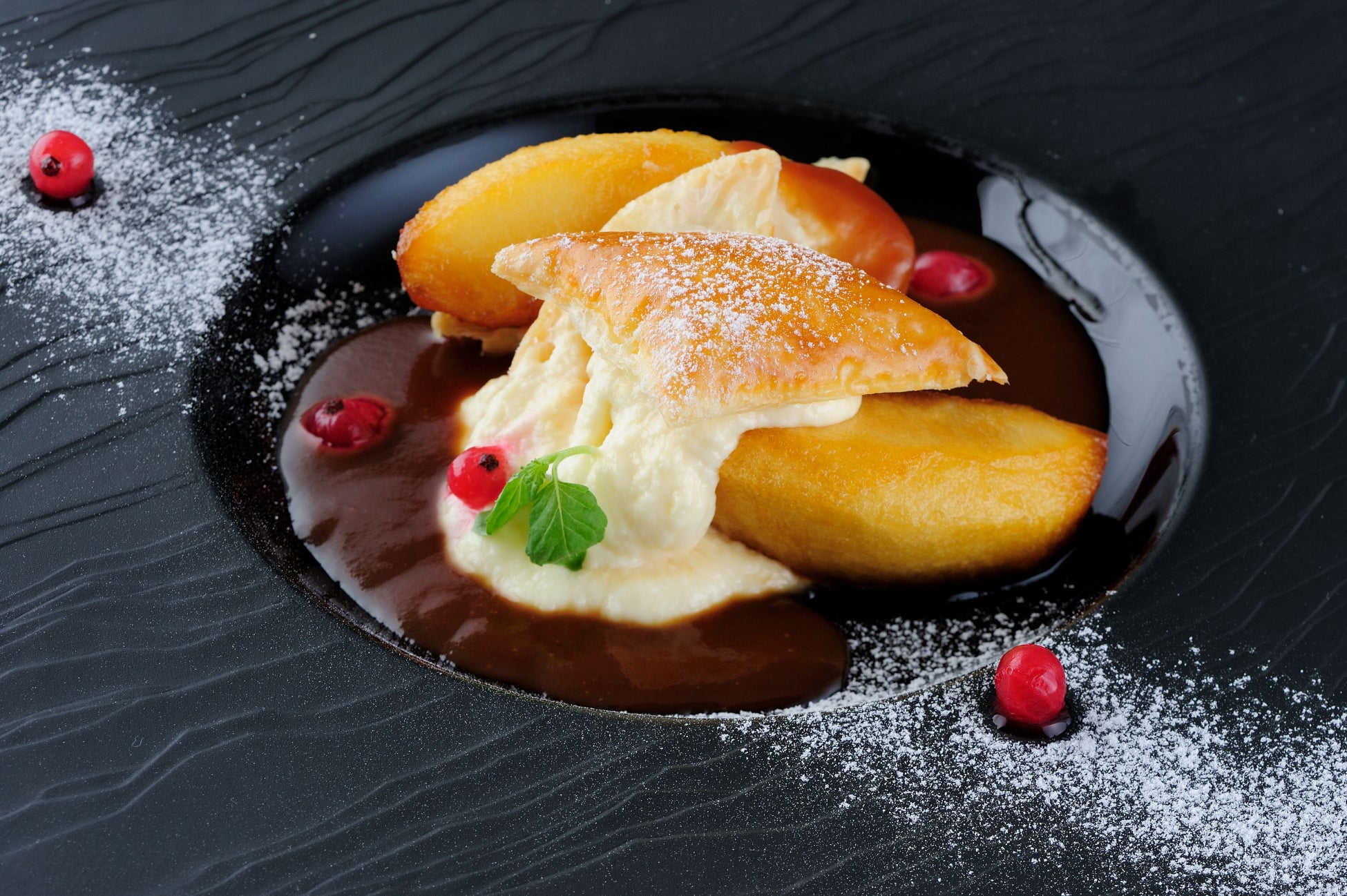 幾重にも重ねられたサクサクのパイ生地に、甘酸っぱいリンゴとキャラメルのほろ苦さを重ねた「リンゴのフィユッテ」は、温かい状態でお席へお持ちいたします。口に運ぶとほんのりとバターのコクが広がり、リンゴの果実の瑞々しさと絶妙に調和します。ひと口ごとに、サク、しっとり、ジュワッと広がる食感のコントラストが心に残るひとときを演出します。冬の季節にぴったりなあったかスイーツをぜひご堪能ください。