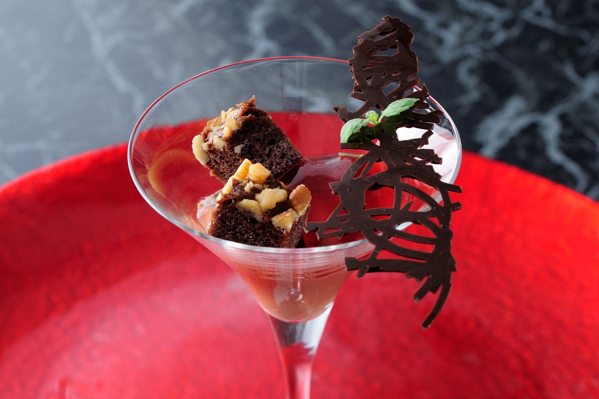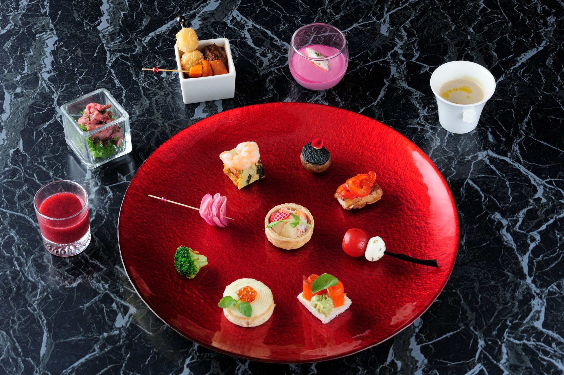 赤と黒の世界観を多層の味わいと食感で表現したセイボリー