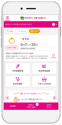 この度、新たな情報発信ツールとして『幸せます☆子育て応援ナビ』を導入しました。このアプリでは、市と県からの子育てに関する情報を受け取ることができ、また成長記録や予防接種の管理などさまざまなサービスを利用することができます。安心して妊娠・出産・子育てができるよう、是非『幸せます☆子育て応援ナビ』をご利用ください。
