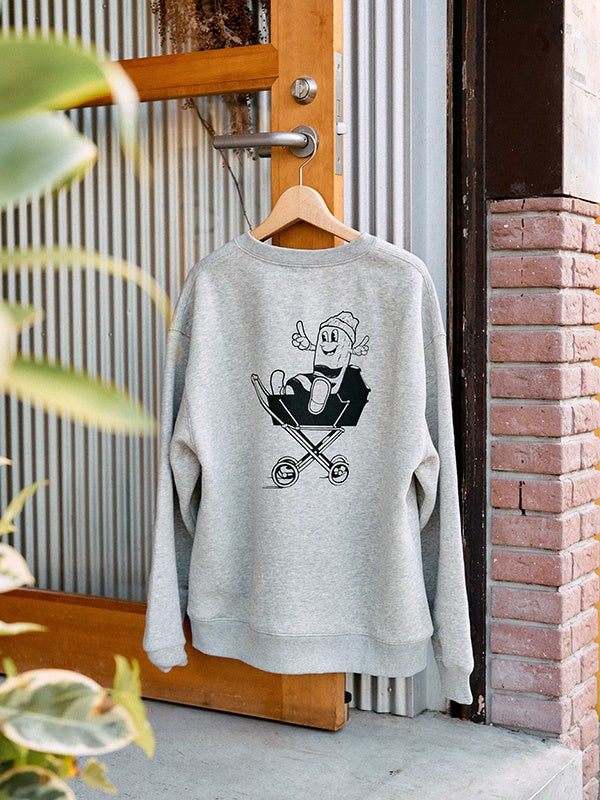 キャッチーでアイコニックなBREADMANのキャラクター・バゲットマンが目を引くクルーネックスウェット。胸元には看板にもなっているBREADMANのロゴを刺繍で入れた、1枚でもスタイリングが決まる1着になっています。