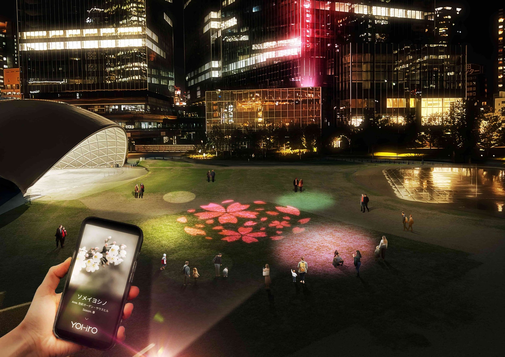 会場ではYOI-enを活用した体験コンテンツ「YOI-iro」にアクセスし、来訪者が自身のスマートフォンに誕生月を入力することで、誕生月の季節に見頃を迎えるデジタルフラワーがスマートフォンに表示され、芝生広場内と周囲のライトアップがそれに呼応して温かく光り輝きます。光とデジタルが融合する新しい体験が、冬の「グラングリーン大阪」に特別なひとときをもたらします。