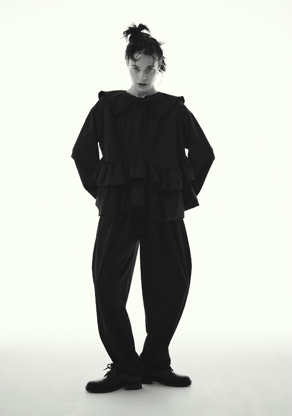 1st Collectionは、Emotional BLACKをテーマに凛とした存在感を放ちます。黒の強さに丸いフォルムや柔らかさを重ねフリルやプリーツのディテールで奥行きと動きを加えました。黒を纏うごとに新しい表情をみせるコレクションに仕上げました。