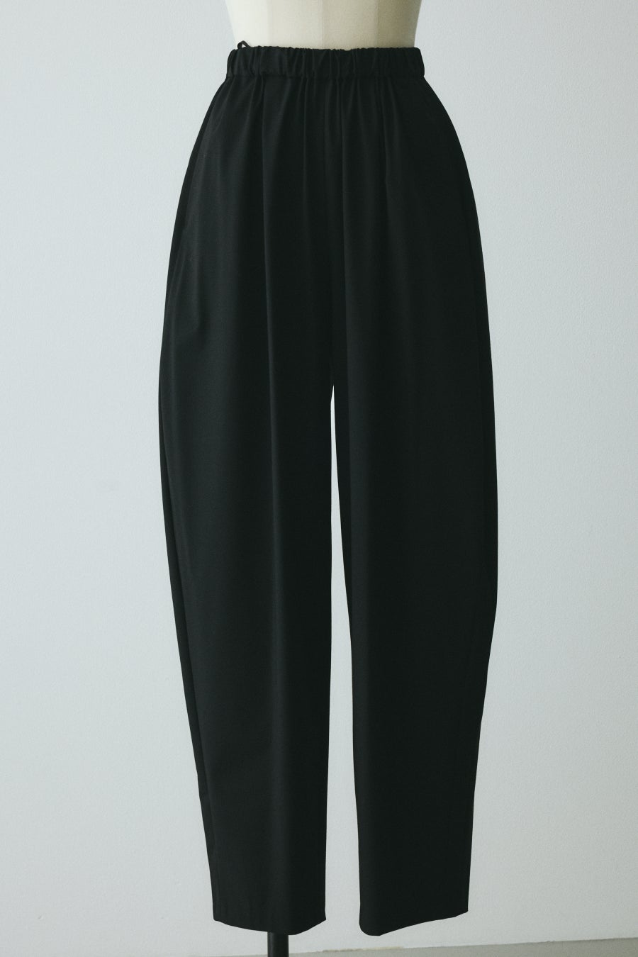 イージーな履き心地と綺麗めな佇まいを両立したパンツ。ウエストはゴム使用。日常にもフォーマルにも寄り添う一本。適度にハリを感じるしなやかな風合いでキレイなシルエットが表現できる素材。毛羽の少ないクリアな表面感と心地よい滑らかな肌触りが特徴です。