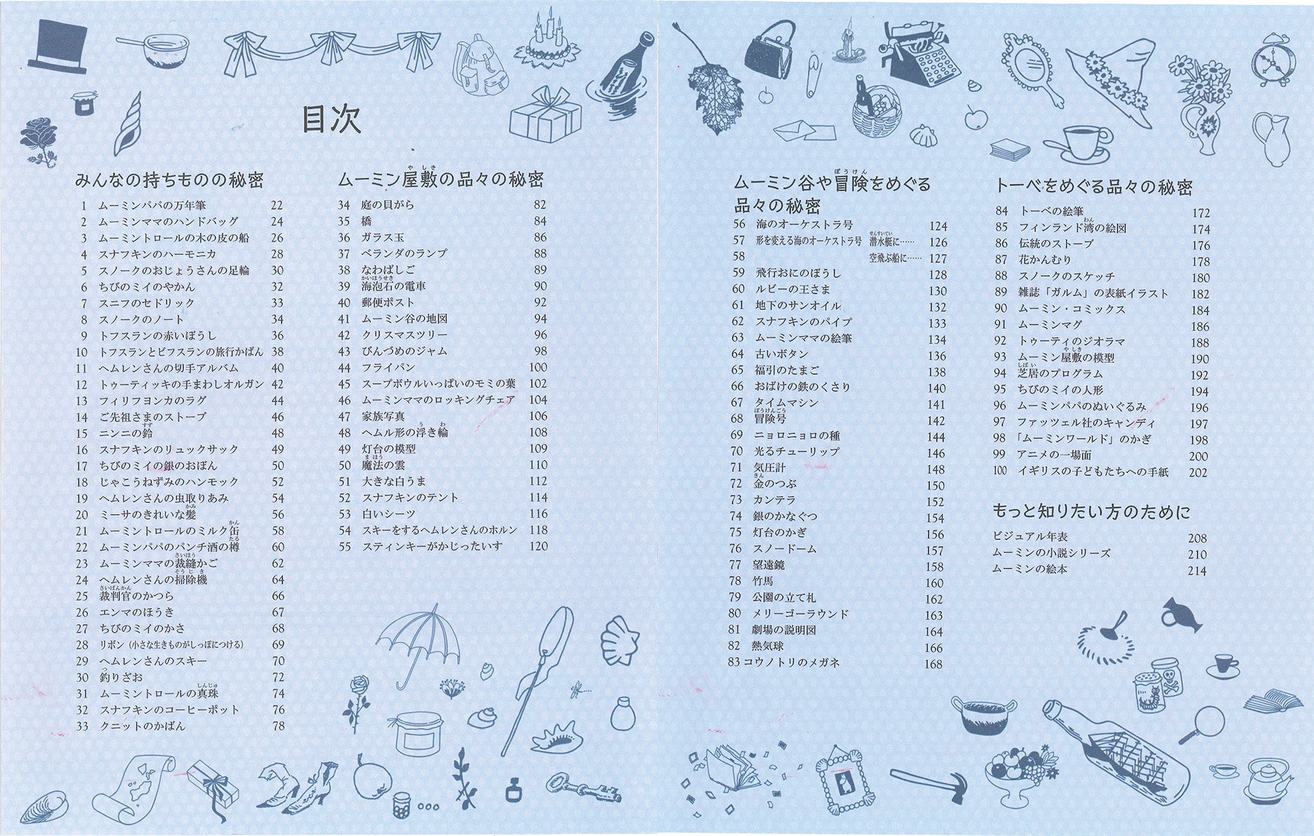 ムーミンをめぐる100の「もの」についてくわしく見ていくと、ムーミン谷にくらす人たちの考えていることや、感じていることがわかるかもしれません。また、作者トーベ・ヤンソンの世界に近づくこともできるでしょう