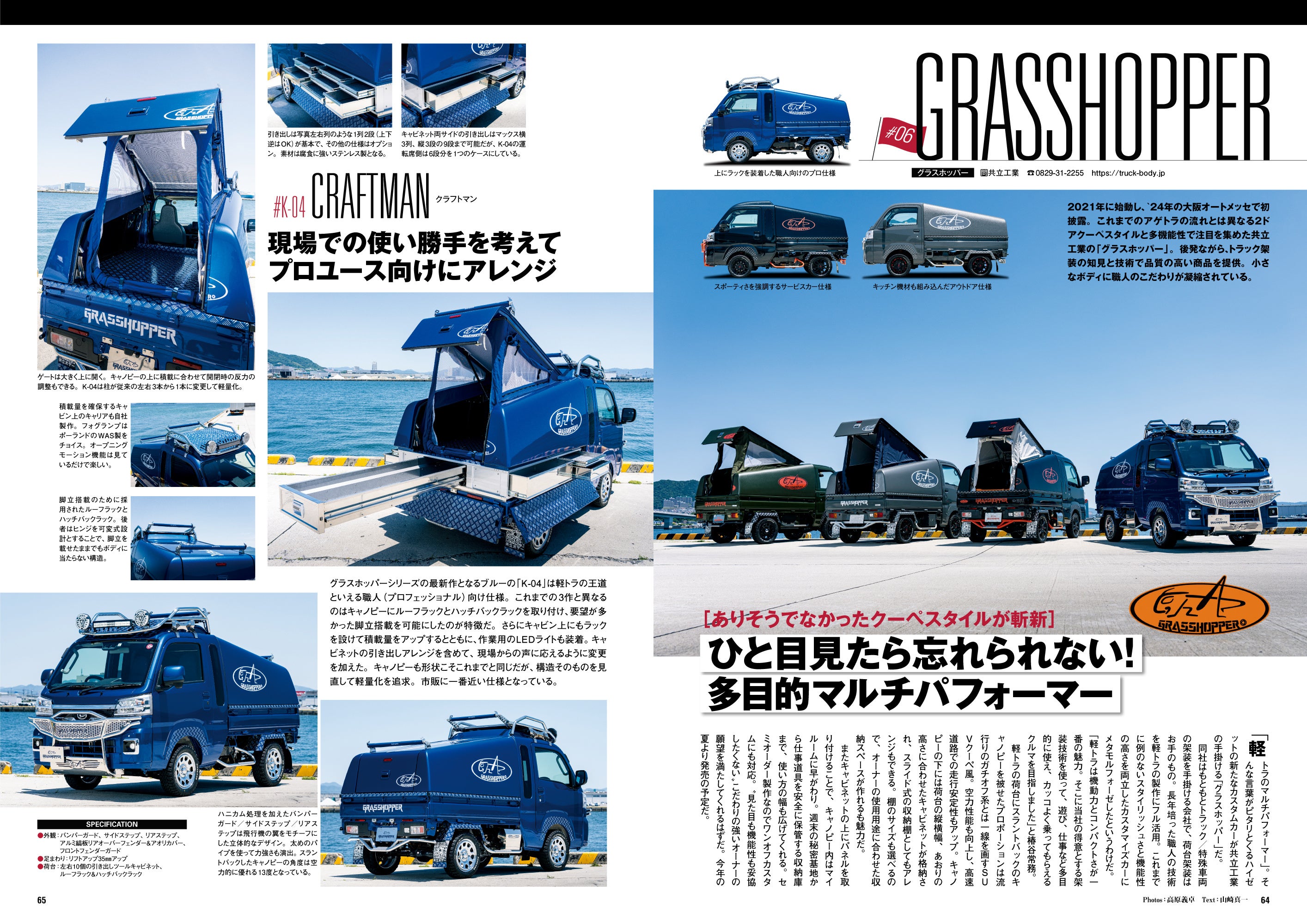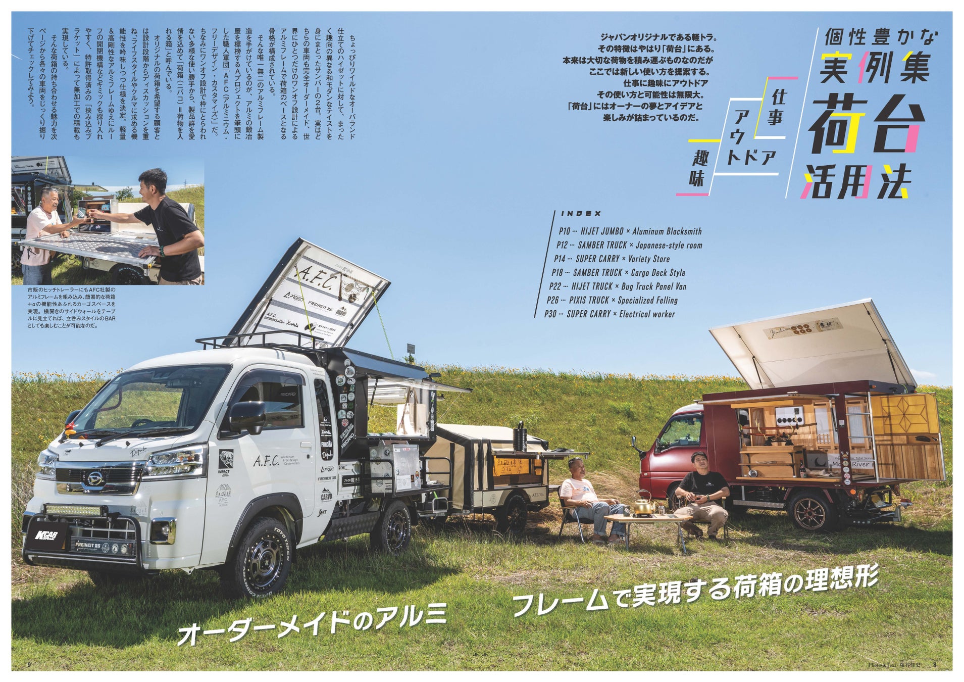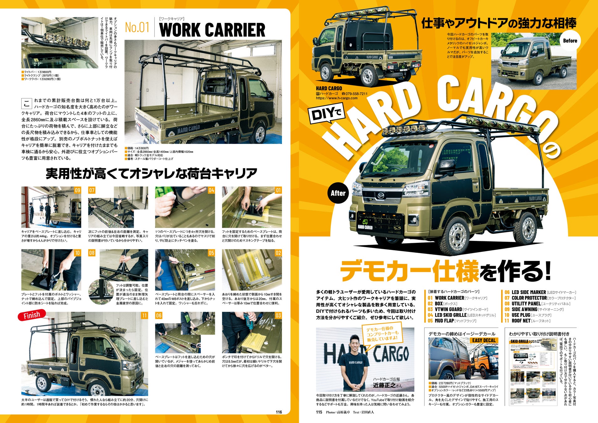 今、もっともホットな車「軽トラ」を丸ごと楽しむための専門誌。最新のデモカー紹介に、仕事やアウトドアで役立つ荷台アレンジ術、さらに全国の軽トライベントも取材。人気のハードカーゴのパーツもDIYで取り付けて、デモカー仕様にしてみました。