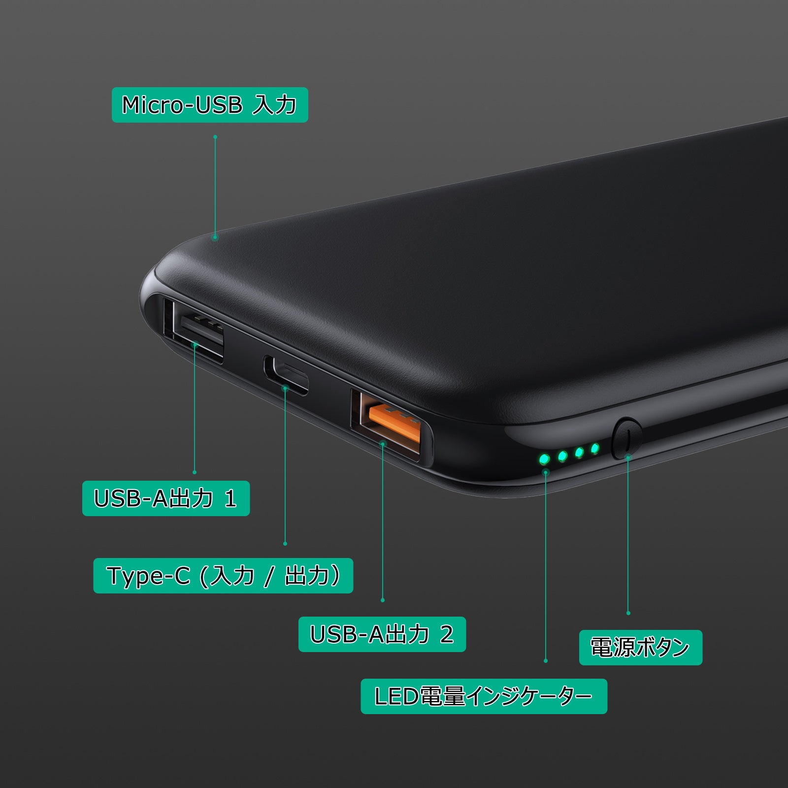 バッテリータイプ: リチウムポリマ - Micro-USB 入力: 5V 2A